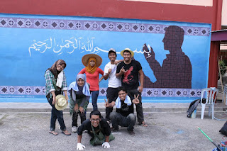 Assalammualaikum, hi reader. today story morry about 20 May 2012. 20 people from fineart department UITM shah alam including me. Join the murals painting in Sekolah Rendah Agama Seksyen 3. Actually, I started to participate as to fill in a resume activities. But after, I am very excited, because before this I never participated in painting the mural. Very fun when, have a (cabutan bertuah) but i not bertuah, haha, also dpat sijil.